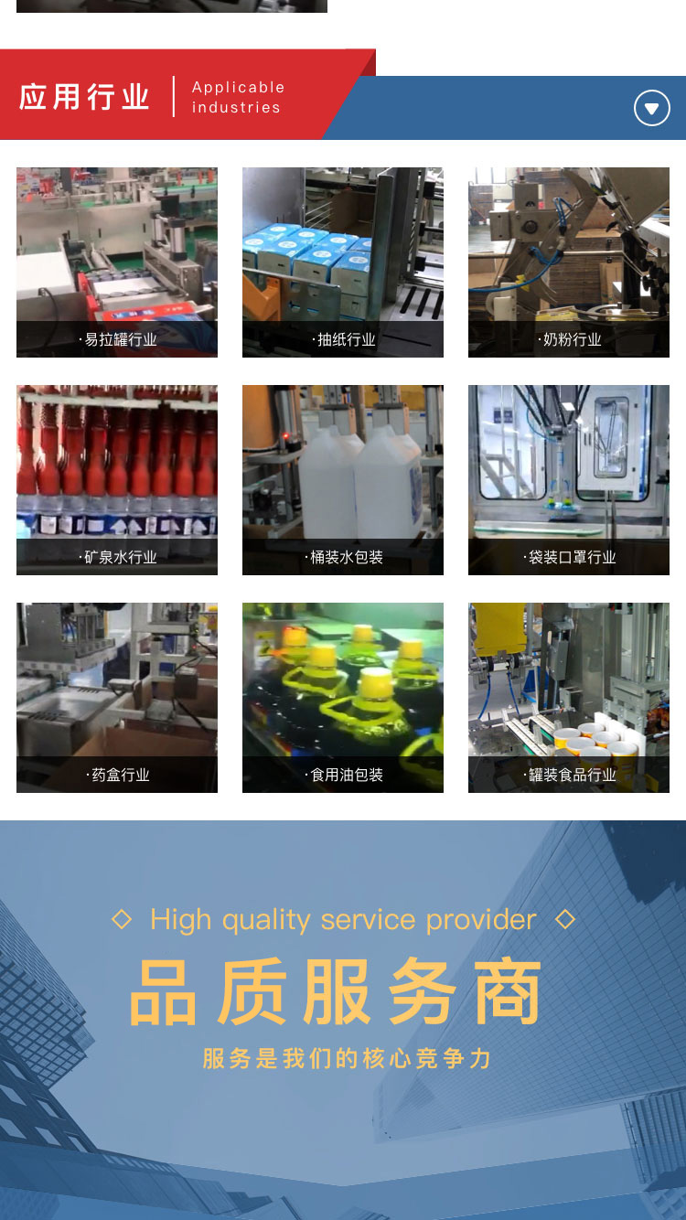 介紹:裝箱機是包裝機械的一種,有自動箱盒機、裝箱機等. 自動裝箱機是將藥瓶、藥板、藥膏等和說明書自動裝入折 疊紙盒中,并完成蓋盒動作。大屏幕可視面板獨立式按鈕七寸彩屏界面,簡單快捷,操作易懂單獨的按鈕設計,操作更簡單側推裝置結構緊湊合理電器元件采用國內品牌,性能穩定將對疊好的抽紙推到箱子里。 專注后道包裝設備性能穩定鑄就匠心品質,精工制造、支持訂制。 產品別稱:裝箱機、裝盒機、自動裝箱機、自動裝盒機、跌落式裝箱機、側推式裝箱機、抓舉式裝箱機、機器人裝箱機、一片式裹包機、藥盒裝箱。